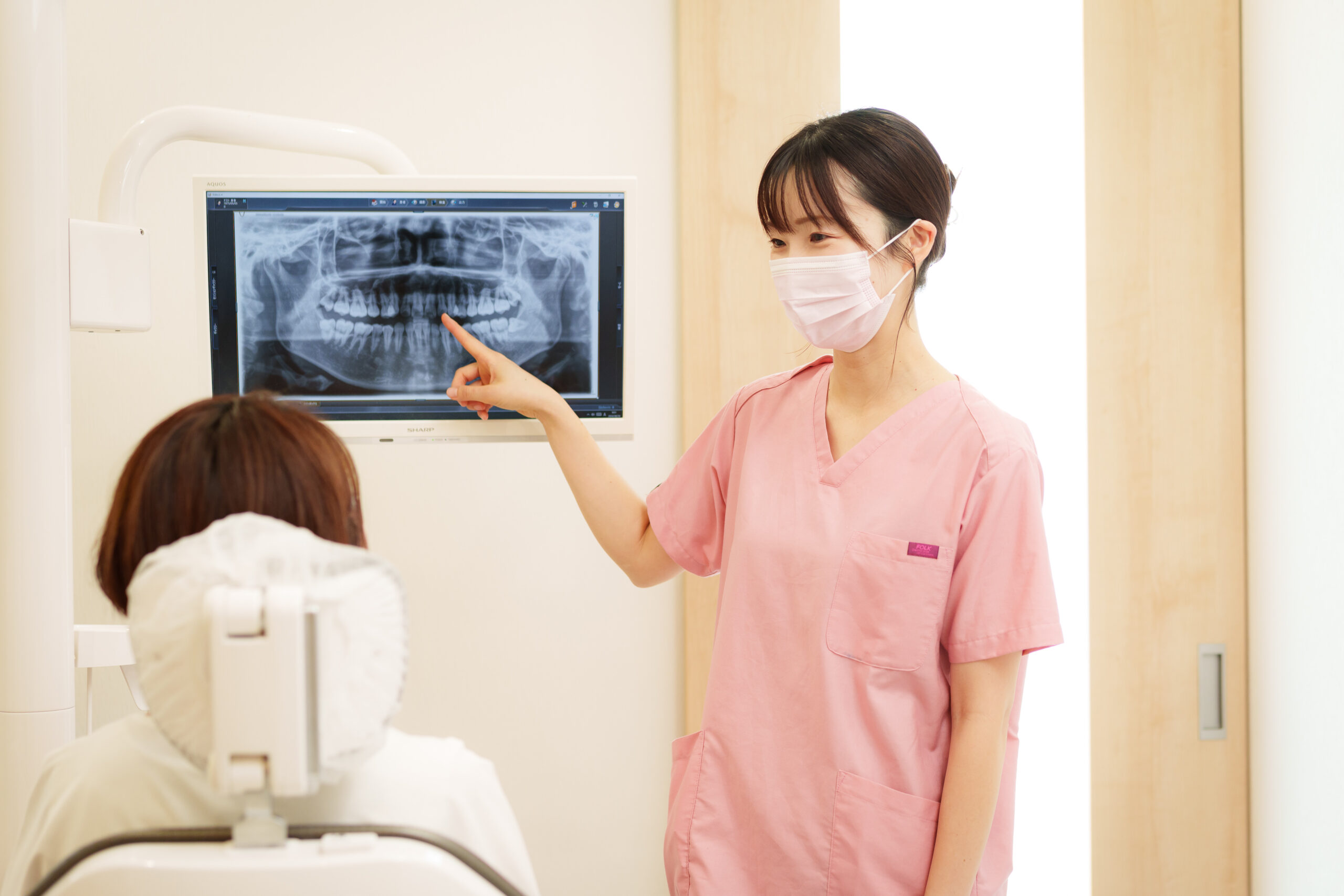 現在の口腔内の状態や過去の歯科治療歴、妊娠の進行状況、薬の使用状況などについて確認します。
